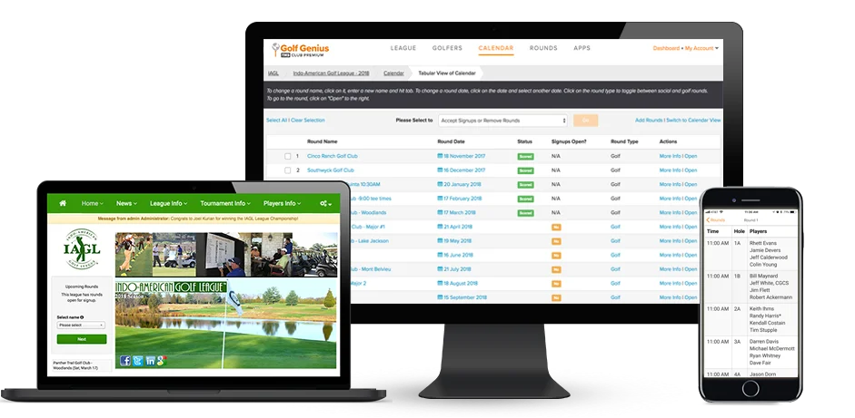 Easily create a dedicated website for each league to share the league schedule, tee times, leaderboards, photos, season points, and more.